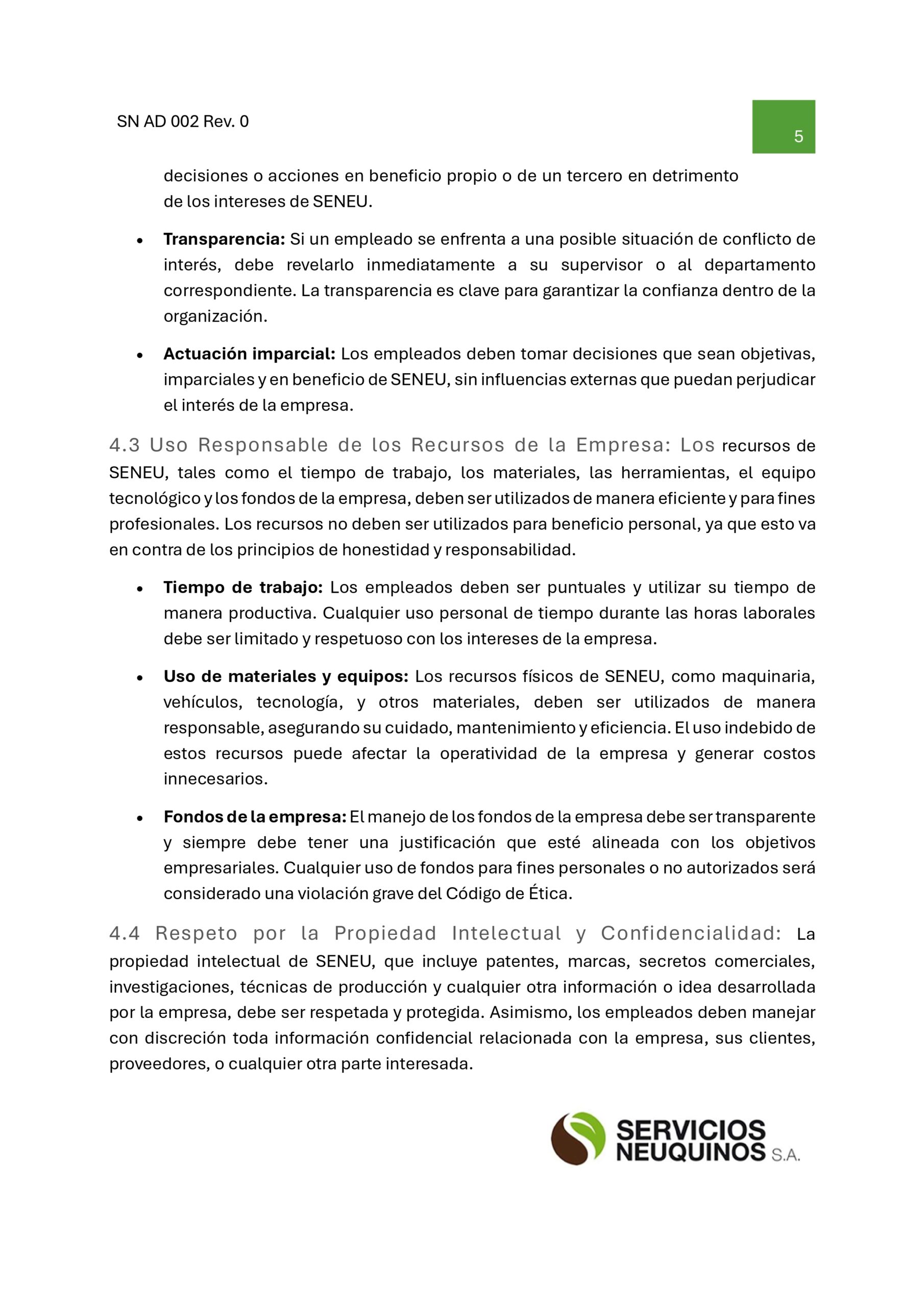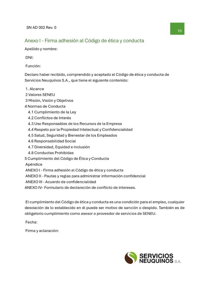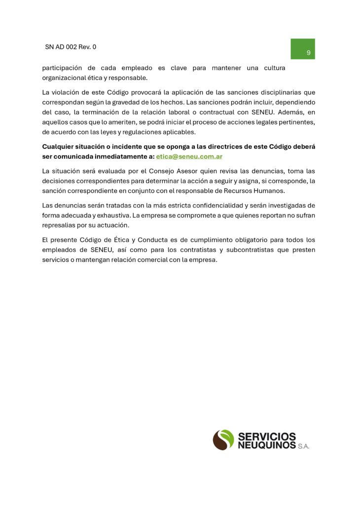 Código de ética y conducta SENEU