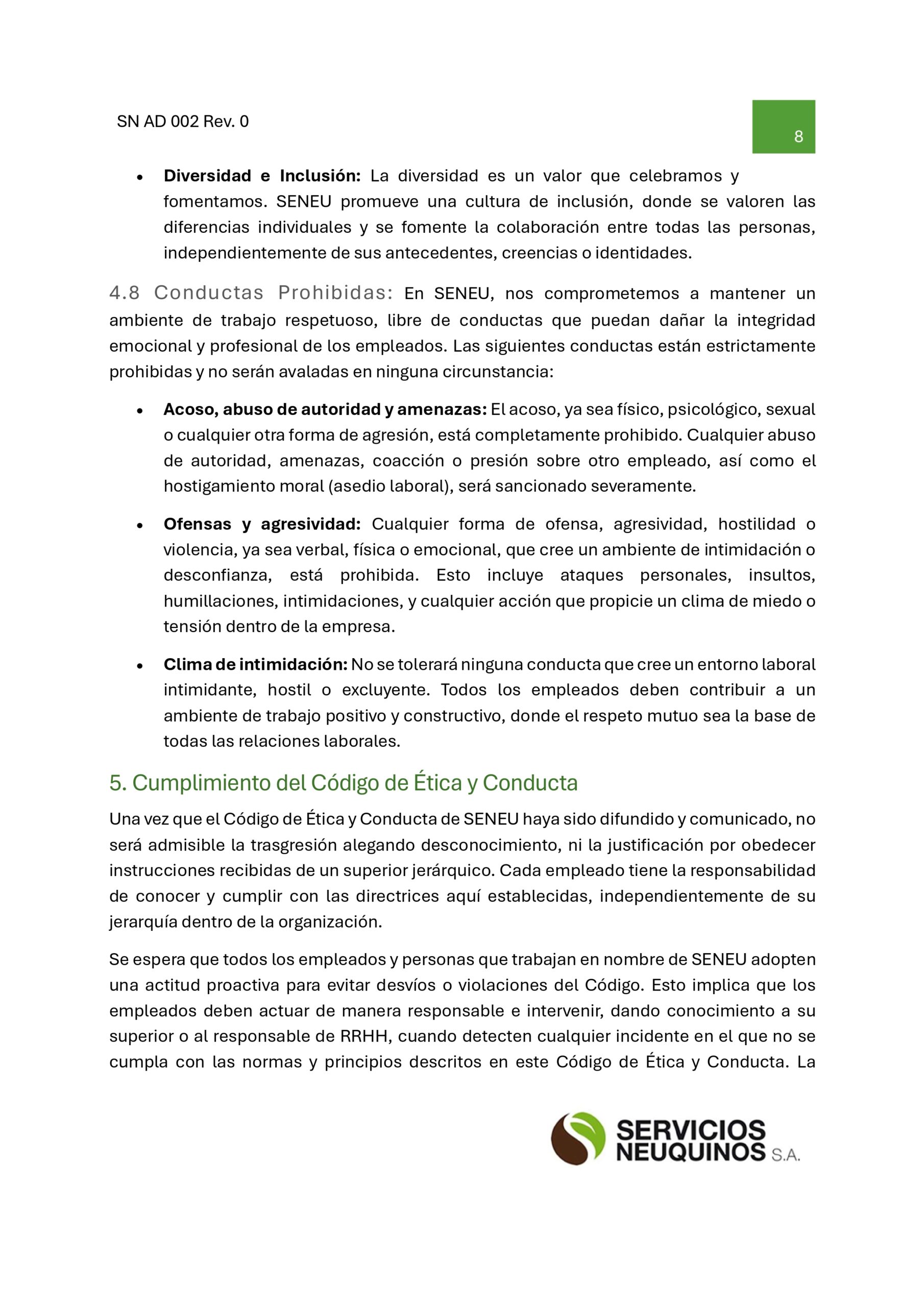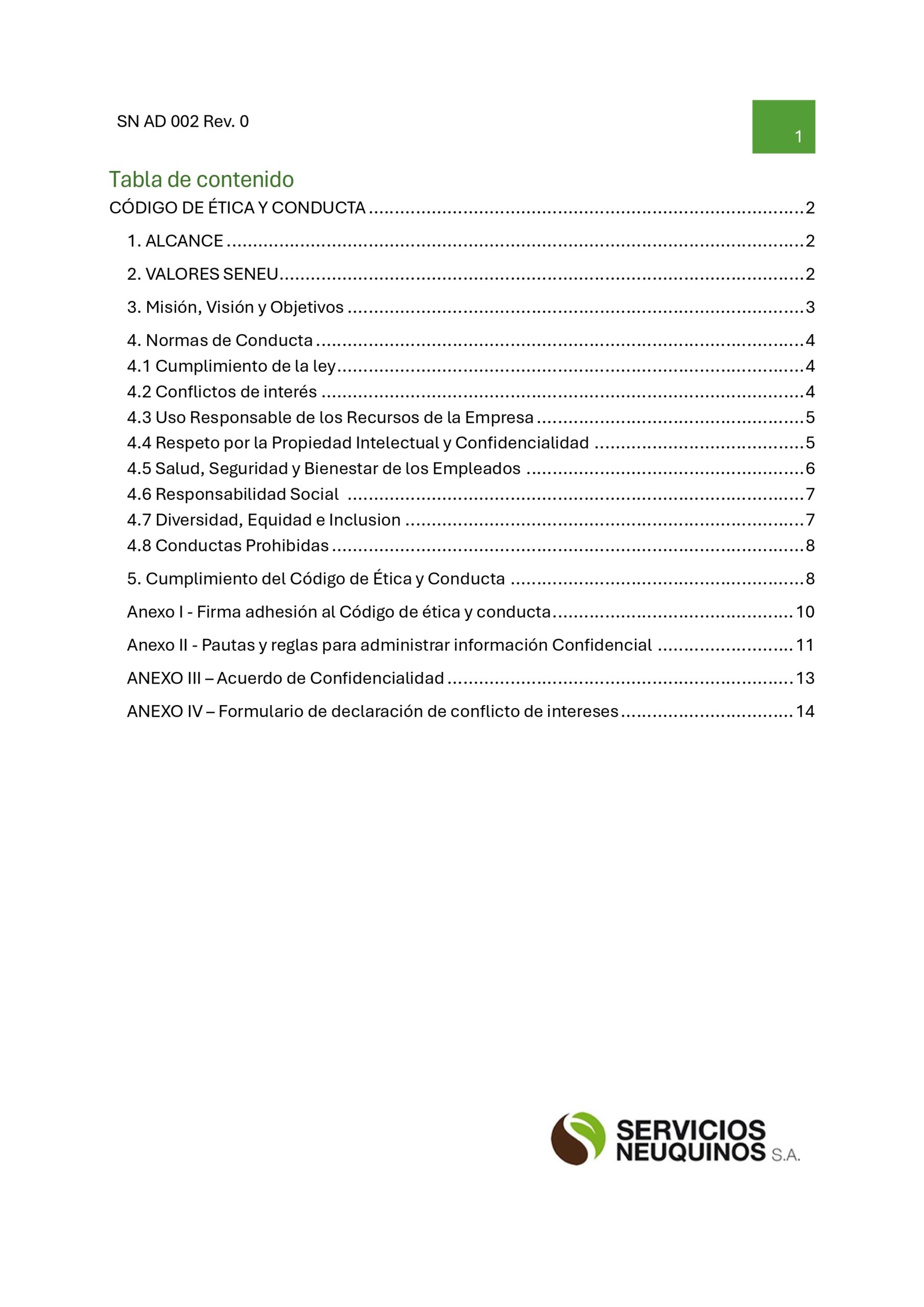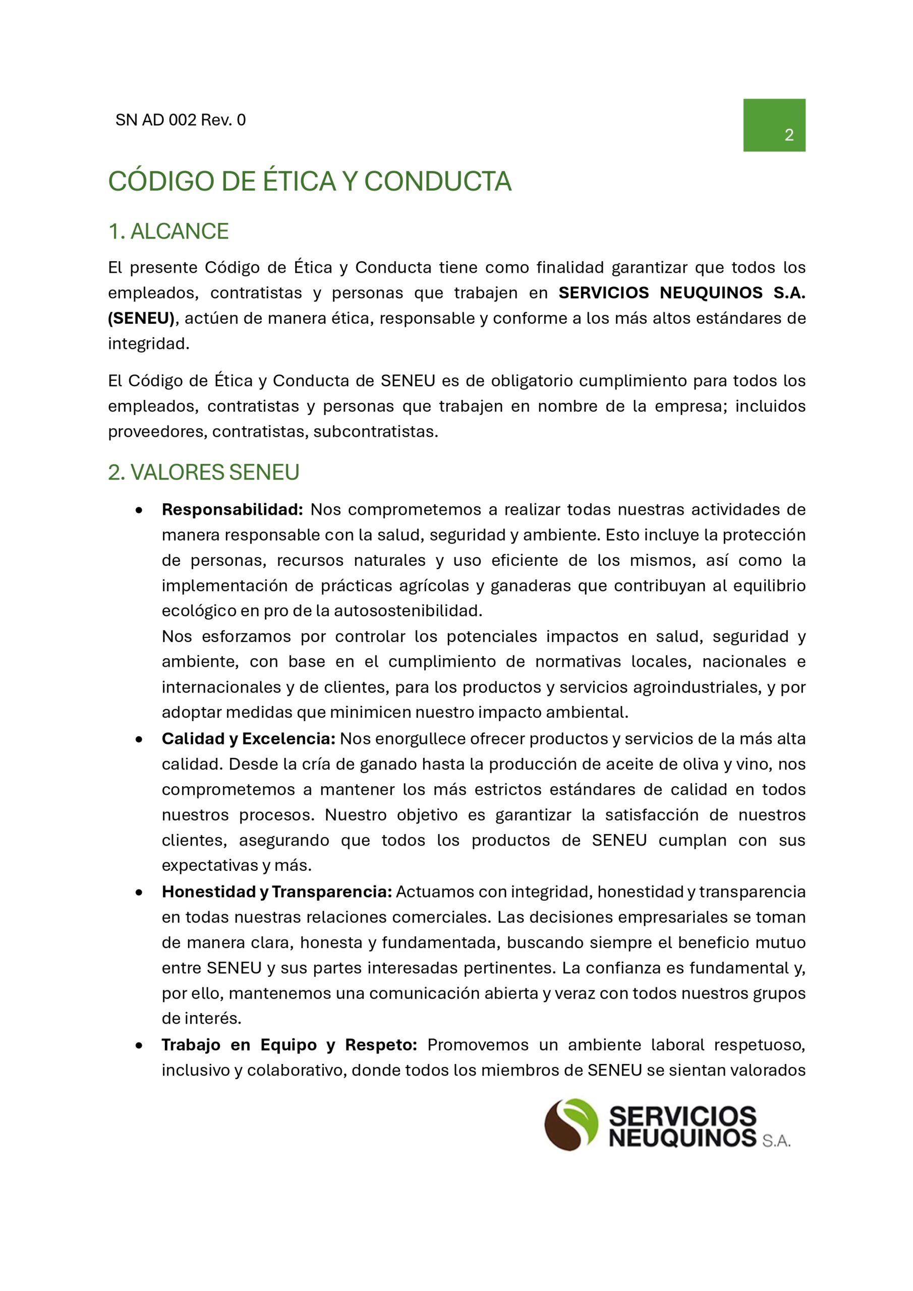 Código de ética y conducta SENEU